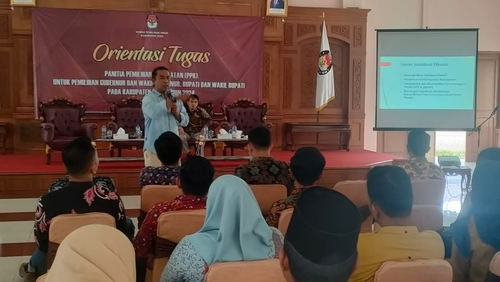 Tebo (Jambi) Kompas86.com__, Pengurus Daerah Ikatan Wartawan Online (PD IWO) Kabupaten Tebo, memberikan materi terkait Sosialisasi Pilkada Yang Efektif kepada Panitia Pemilihan Kecamatan (PPK) se Kabupaten Tebo, Kamis, 23 Mei 2024.