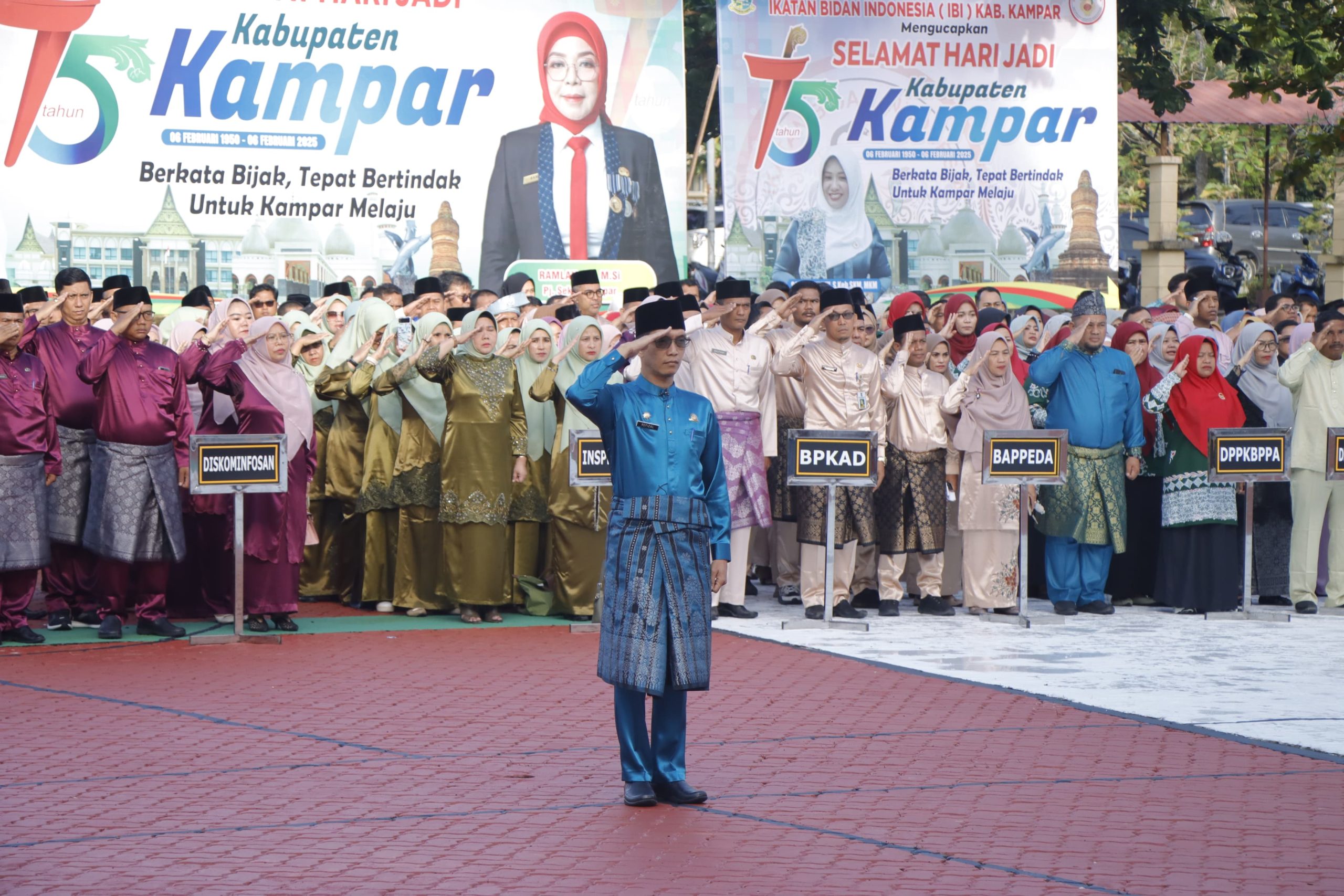 Bangkinang Kotakompas86.com__, Pemerintah Kabupaten Kampar menggelar upacara peringatan Hari Jadi Ke 75 Kabupaten Kampar di Lapangan Kantor Bupati Kampar, Kamis (06/02/2025). Upacara yang dipimpin langsung oleh Pj Bupati Kampar Hambali, SE, MBA, MH, dan diikuti oleh Pj Sekda Kampar Ramlah,SE,M.Si, Ketua TP PKK Kab.Kampar Ny. Ricana Djayanti Hambali, Forkopimda Kampar, jajaran TNI/Polri, Pimpinan Organisasi Perangkat Daerah (OPD), Aparatur Sipil Negara (ASN), PPPK, THL dan TKS di lingkungan Pemerintah Kabupaten Kampar.