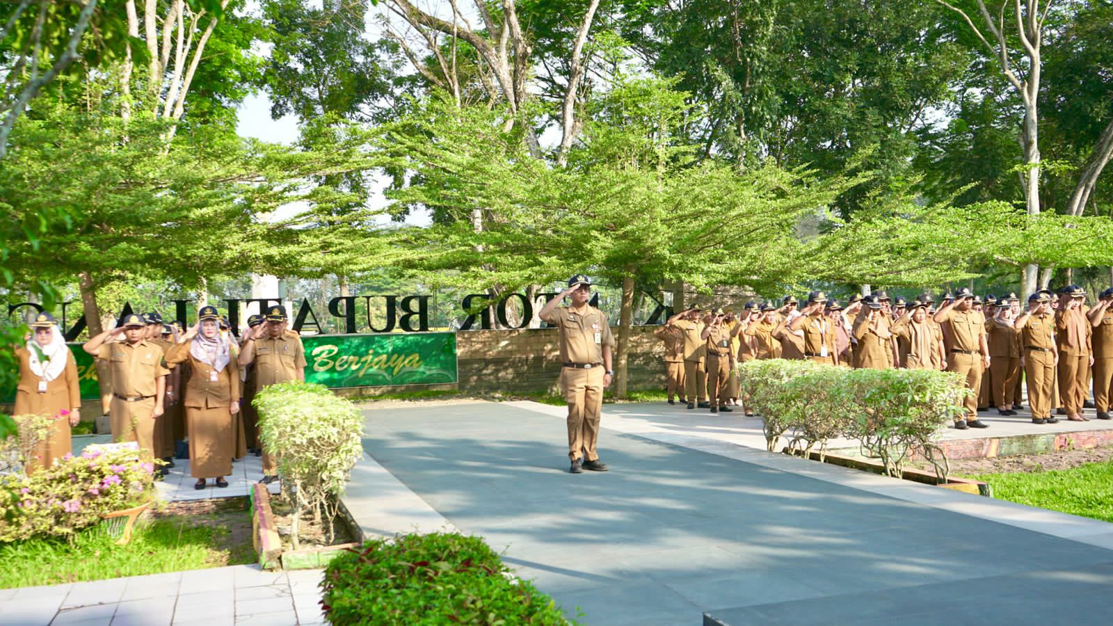 Plt Bupati Langkat H.Syah Afandin SH di wakili Sekda Langkat Amril, S.Sos, MAP pimpin apel gabungan di lingkungan Pemerintah Kabupaten Langkat, di halaman Kantor Bupati Langkat, Senin 5 Februari 2024.