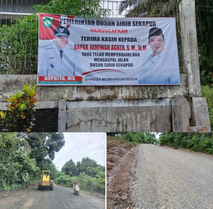 “Kami mewakili masyarakat Sirih Sekapur sangat berterimakasih kepada Jumiwan Aguza, Atas bantuan beliau usulan kami untuk perbaikan jalan bisa diterima. Saat ini, pengerjaan pengerasan sudah mulai dilakukan di jalan Bukit Nek Ca,” ujar Defrita.