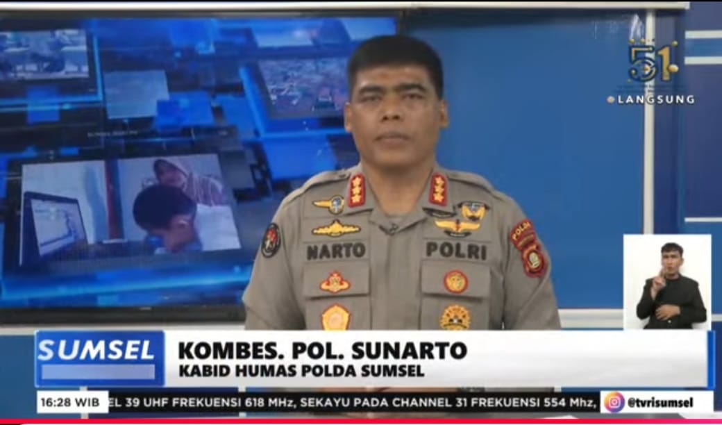 Palembang: Kabid Humas Polda Sumsel Kombes Pol SKabidunarto berkesempatan menjadi pembawa berita di TVRI Sumsel. Kegiatan ini dilakukan di studio TVRI Sumsel, Palembang, Sumatera Selatan, Selasa (28/1/2025) sore
