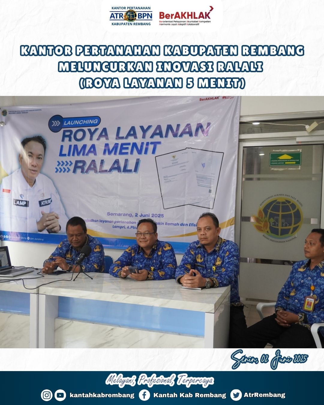 Rembang – Kabar Gembira dari Kantor Pertanahan di Wilayah Provinsi Jawa Tengah! Urus Roya Sertipikat Kini Cuma 5 Menit!