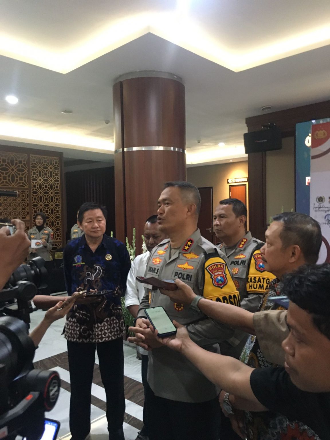 Kapolda Jawa Timur Irjen Pol Drs. Imam Sugianto, M.Si menggelar Silaturrahmi dengan Pimpinan Redaksi dan Kepala Biro Media Jawa Timur serta 4 organisasi wartawan ( PWI, PJI, IJTI dan AMSI ) di Gedung Patuh Lantai 2 Mapolda Jawa Timur, Senin sore 29/1/2024.