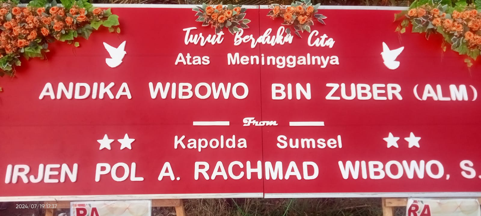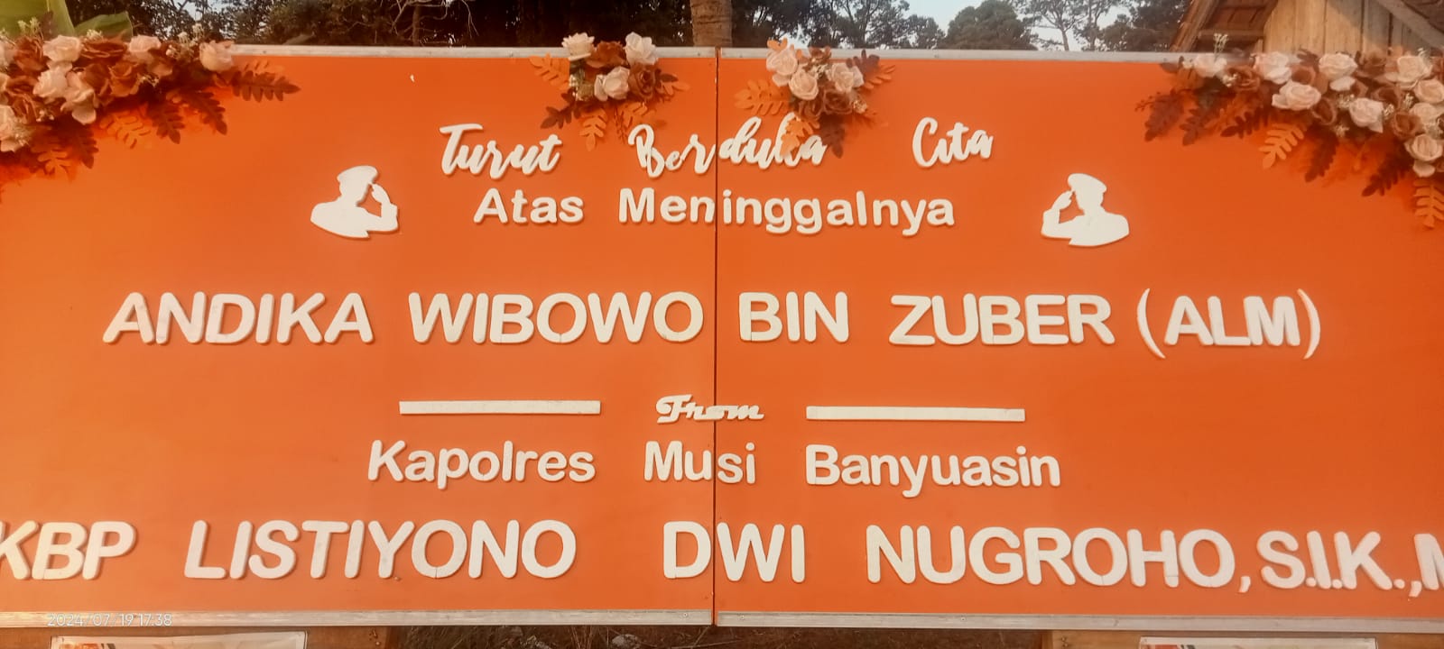 M.Ι.Κ. melalui Kabid Humas Polda Sumsel Kombes Pol Sunarto dan Kapolres Musi Banyuasin AKBP Listiyono Dwi Nugroho S.I.K.,MH Kasi Humas Polres Muba AKP Susianto menyampaikan ucapan duka cita atas berpulangnya Andika Wibowo Bin Zuber (Almarhum)Ucapan dukacita itu disampaikan Kapolda hari Jum’at (19/7/2024).