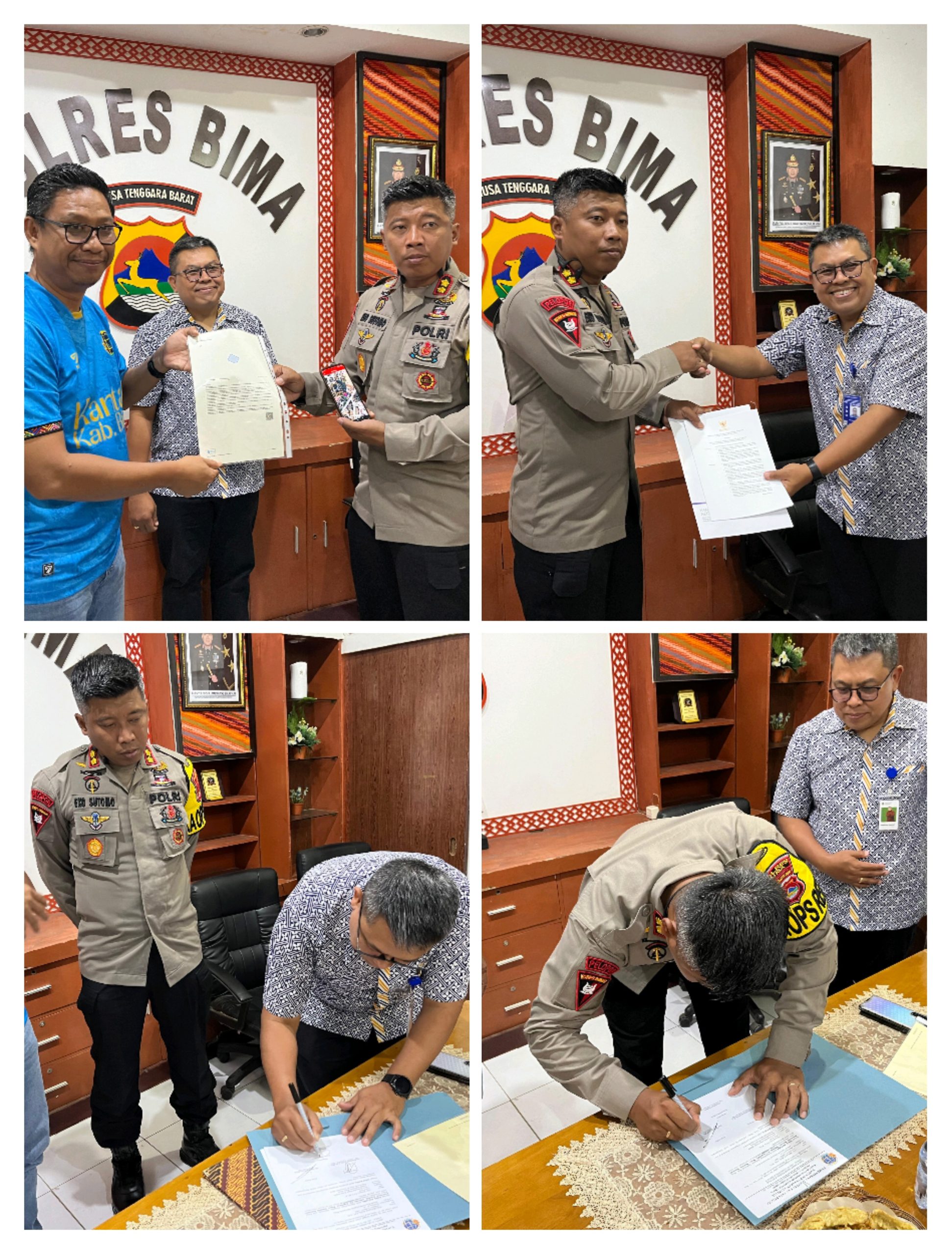 Sertifikat tanah Poliklinik Polres Bima diserahkan oleh Kepala KPKNL Bima Benediktus Margiadi dan Kepala BPN Bima Lalu Makhyaril Huda dan di terima langsung oleh Kapolres Bima AKBP Eko Sutomo S.I.K.,M.I.K.,