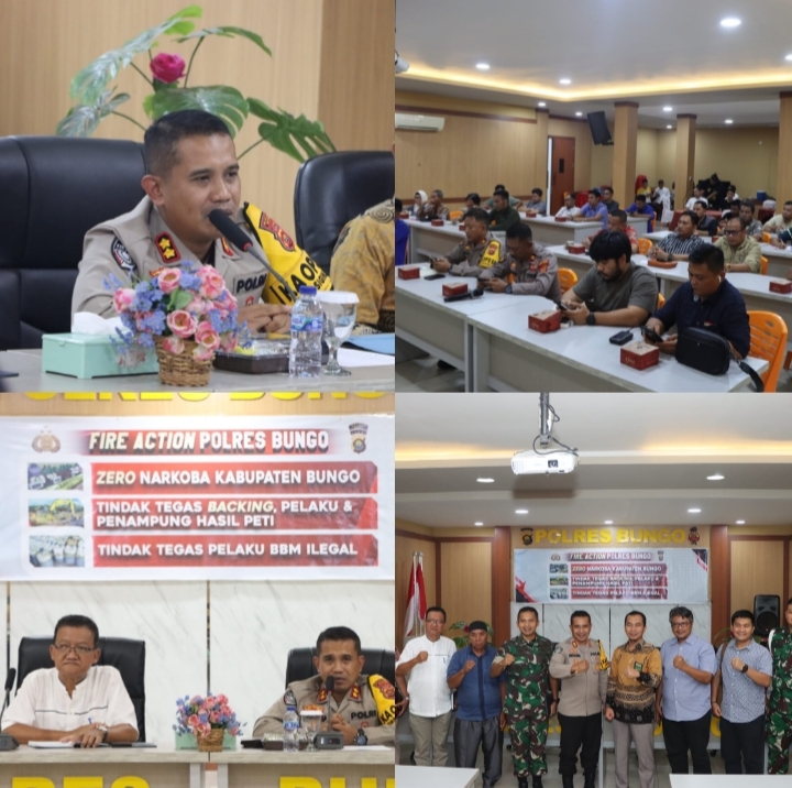 “Kami sudah menyiapkan Tim khusus yang terdiri oleh Bintara Remaja atapun BAJA dan personil Polres Bungo untuk menindak lanjuti Aktivitas PETI, Kami akan membuat sebuah Aplikasi Pelayanan Polres Bungo yang berfungsi sebagai sarana pelayanan kami melalui Teknologi sesuai perkembangan Zaman, “sebut AKBP Natalena Eko Cahyono.