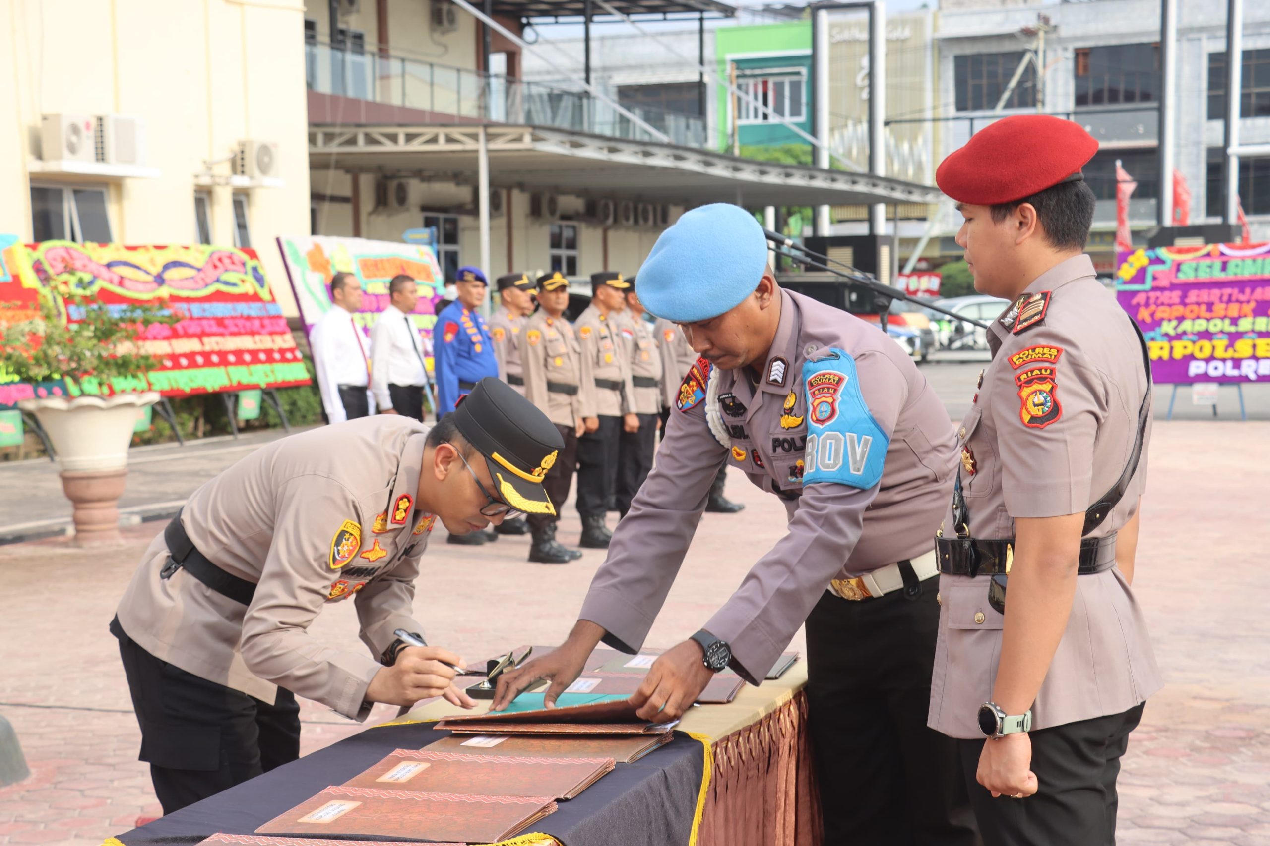 Kapolsek Medang Kampai, dari AKP Hermawan, S.H. kepada Iptu Suprizal, S.Sos., M.I.P, Kapolsek Bukit Kapur dari Iptu Anra Roza, S.H., M.H. kepada Iptu Zulfahli, S.H., M.H, Kapolsek Sungai Sembilan dari AKP Edwi Sunardi, S.AP., S.H. kepada Iptu Apriadi, S.H., M.H.