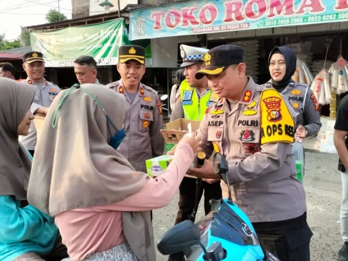 Perawang Siak kompas86.com – Bertempatan hari ke 5 bulan Ramadhan 1445 H 2024 m, Kapolres Siak Akbp Asep Sujarwadi S l.K M. S i di dapingi waka polres siak kompol Ade Zalni S farma Apt. S.l.k beberapa pejabat jajaran utama polres Siak dan Kapolsek Tualang kompol arry Prasetyo. SH.MH membagikak Takjil gratis di jl.Raya km.4 perawang pasar Tuah serumpun dengan pos pam kec.Tualang perawang Sabtu (16/3/2024) Sore.