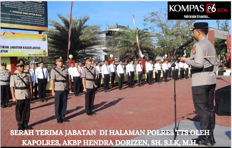 Kompas86.com – Kegiatan serah terima jabatan ini dilakukan di halaman Polres TTS oleh Kapolres, AKBP Hendra Dorizen, SH. S.I.K, M.H, dan dihadiri oleh anggota Polres TTS, Sabtu 09/08/2025.