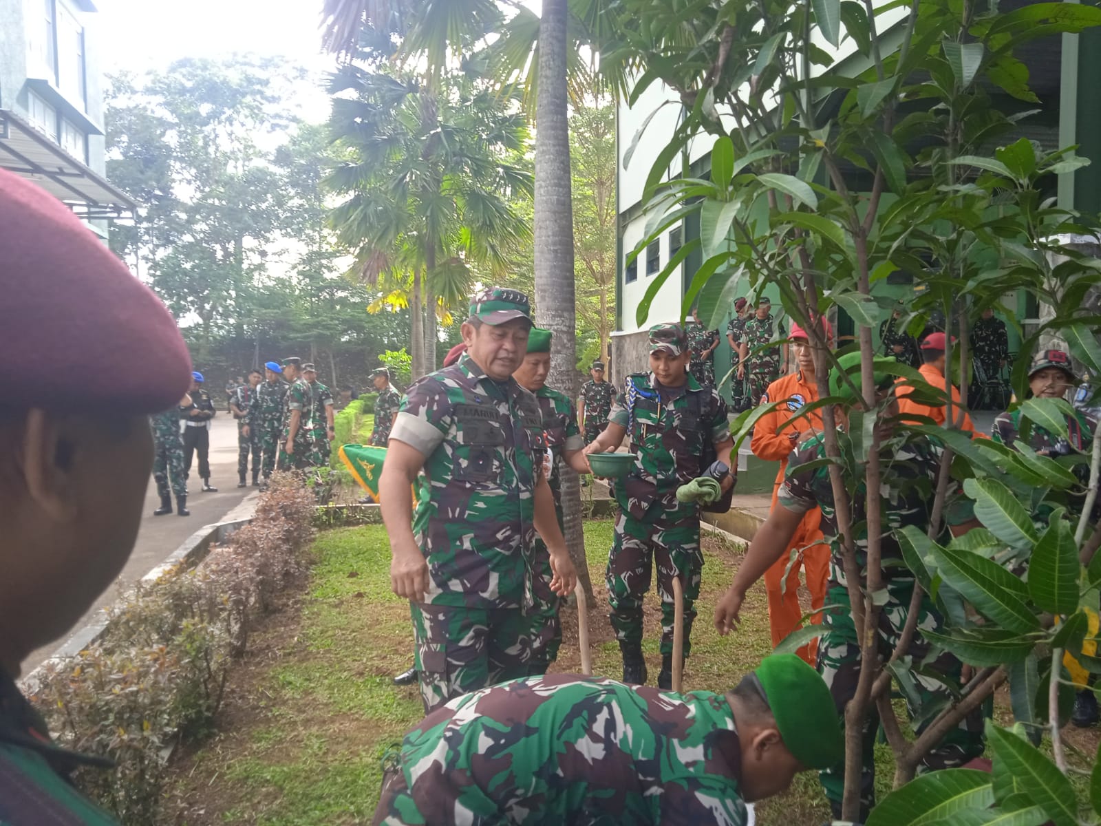 Usai meninjau pelaksanaan Latbakjatpesud Puspenerbad, Kasad yang didampingi sejumlah pejabat utama TNI AD, menyerahkan bantuan sosial kepada masyarakat yang tinggal di sekitar daerah latihan, serta melaksanakan penanaman bibit pohon tanaman buah di Pusdikif Pussenif.