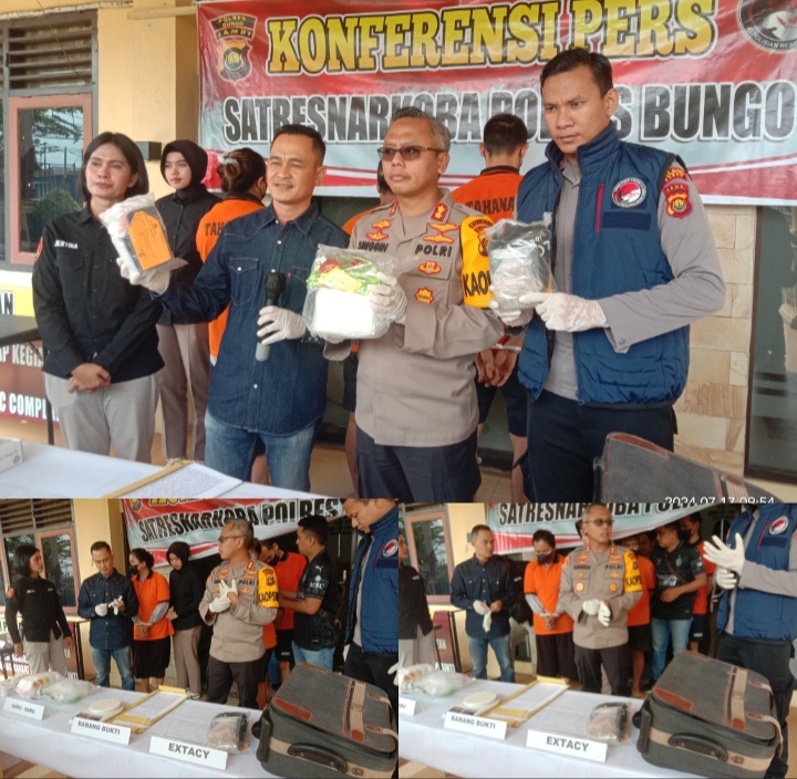 wilayah hukum polres bungo provinsi Jambi Rabu 17 Juli 2024 pagi ini pada pukul 9:30 WIB melaksanakan Kompresi pers terkait penyalahgunaan narkoba jenis sabu-sabu senilai 1 kilogram dengan dinilai Dengan uang sebesar lebih kurang 1,2 milyar rupiah.