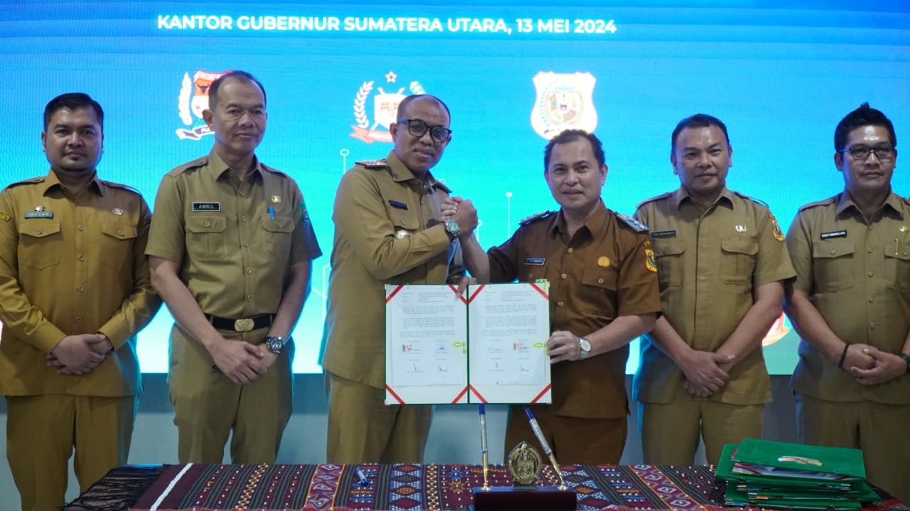 Disaksikan langsung oleh Pj Gubernur Sumatera Utara H.Hassanudin, Kerjasama itu ditandai dengan penandatanganan MoU yang dilakukan oleh Pj Bupati Langkat H.M.Faisal Hasrimy, Bupati Kabupaten Karo Ibu, Cory Sriwaty Sebayang dan Pj. Bupati Kabupaten Dairi ,Surung Charles Bantjin, kemudian antar para pedagang komoditi bahan pangan dan para OPD terkait Bertempat di Ruang Rapat 1 Lantai 2 Kantor Gubernur Sumatera Utara Medan, Senin (13/5/2024).