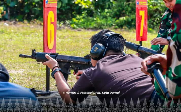 DUMAI – Ketua DPRD Kota Dumai, Agus Miswandi, S.A.B., bersama dua Anggota DPRD Kota Dumai, Ananda Putri Salsabila, S.M., M.M., dan Kenda Guntara, S.Sos., menghadiri kegiatan latihan menembak yang diselenggarakan oleh Kantor Pengawasan dan Pelayanan Bea dan Cukai Tipe Madya Pabean B Dumai, Rabu (16/7/2025).
