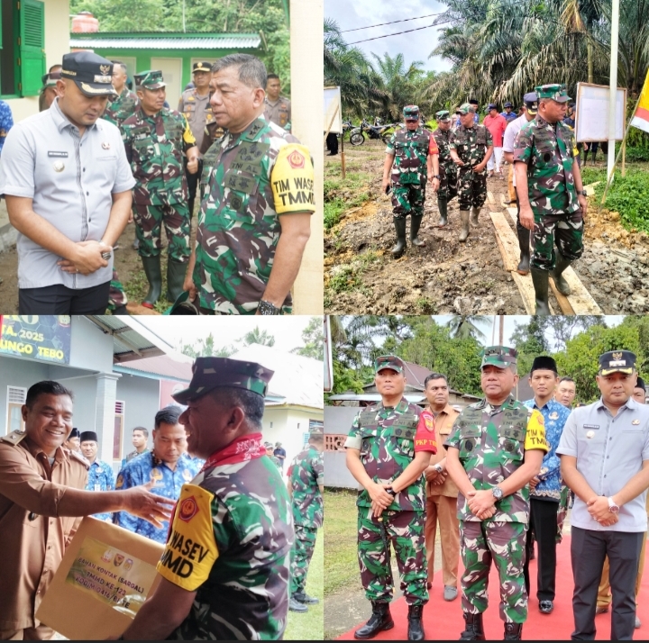 Ketua Tim Pengawas dan Evaluasi TNI Manunggal Membangun Desa (Wasev TMMD) ke-123 Tahun 2025 Aspotmar Kasal Mayjen TNI (Mar) Dr. Hermanto, S.E,. M.M,. CSBA,. CTMP melakukan kunjungan ke Desa Teluk Kuali dan Malako Intan Kecamatan Tebo Ulu Kabupaten Tebo, Senin (17/03/2025).