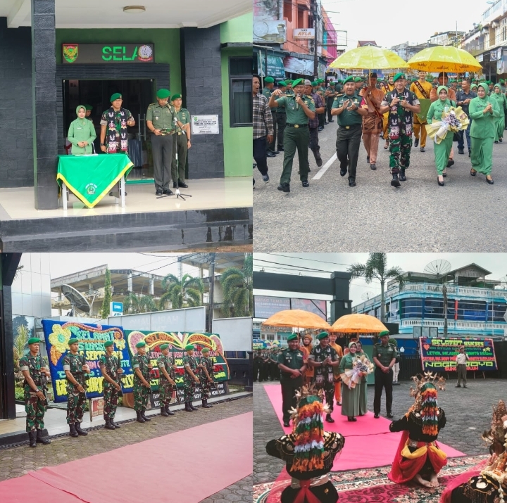 Kodim 0416/Bute menggelar acara tradisi penyambutan pejabat Dandim baru, Letkol Inf Dedy Pungky Irawanto, S.I.P., M.I.Pol, beserta istri, Ny. Vilana Dedy Pungky bertempat di Makodim 0416/Bute, Jl. Perwira No. 1, Kelurahan Bungo Barat, Kecamatan Pasar Muara Bungo, Kabupaten Bungo, pada Sabtu (12/04/2025).