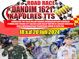 Kodim 1621/TTS bersinergi dengan Kepolisian Resort Timor Tengah Selatan, Provinsi Nusa Tenggara Timur akan menyelenggarakan Event Road Race tahun 2024 yang sesuai informasi akan berlangsung pada tanggal 18 sampai 20 Juli 2024 mendatang.
