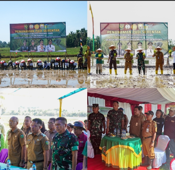 Sebagai bentuk langkah nyata dalam mendukung program swasembada pangan nasional, Komando Distrik Militer (Kodim) 0416/Bungo Tebo (Bute) turut ambil bagian dalam kegiatan penanaman padi secara serentak se-Provinsi Jambi yang digelar pada Selasa (22/04/2025).