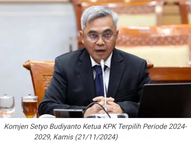Proses Bergulirnya seleksi calon pimpinan (Capim) komisi Pemberantasan Korupsi (KPK) . Kini Komjen Setyo Budiyanto terpilih sebagai Ketua Komisi Pemberantasan Korupsi (KPK) periode 2024-2029 dalam Rapat Pleno Komisi III di Kompleks Parlemen, Senayan, Jakarta, Kamis (21/11/2024).