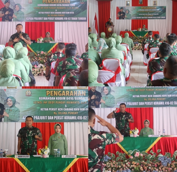 Komandan Kodim 0416/Bute, Letkol Inf Dedy Pungky Irawanto, S.I.P., M.I.Pol., didampingi Ketua Persit Kartika Chandra Kirana Cabang XXIV, Ny. Vilana Dedy Pungky, melaksanakan kunjungan perdana ke jajaran Koramil dalam wilayah teritorial Kodim 0416/Bungo Tebo. Koramil 416-02/Tanah Tumbuh menjadi satuan pertama yang dikunjungi dalam rangkaian kegiatan tersebut, Selasa (20/05/2025).