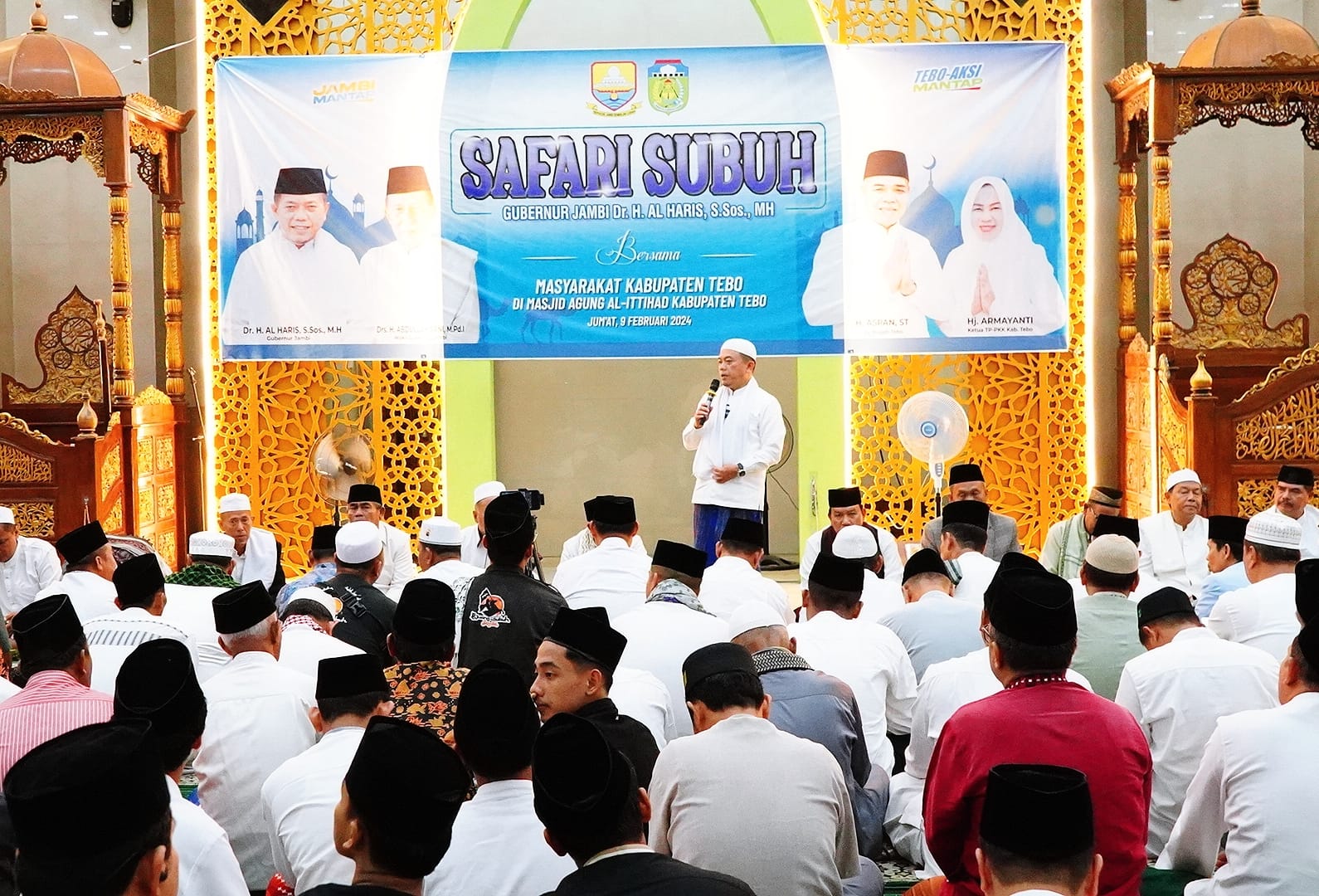 Letkol Inf Arief Widyanto, S.E., M.Han, Dandim 0416/Bute, turut hadir dalam kegiatan Safari Shubuh yang diadakan oleh Gubernur Jambi, bersama Pemerintah Daerah dan masyarakat Kabupaten Tebo. Acara ini berlangsung di Masjid Agung Al-Ihttihad, Kelurahan Tebing Tinggi, Kecamatan Tebo Tengah, Kabupaten Tebo, Jum’at (09/02/2024).