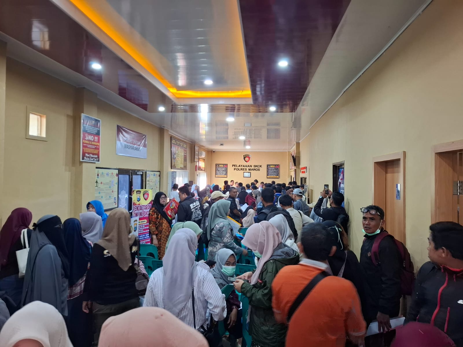 Sejak Kamis (11/9), ratusan masyarakat sudah memadati gedung pelayanan Tahtya Dharaka Polres Maros untuk mengurus SKCK sebagai salah satu syarat utama pendaftaran P3K.