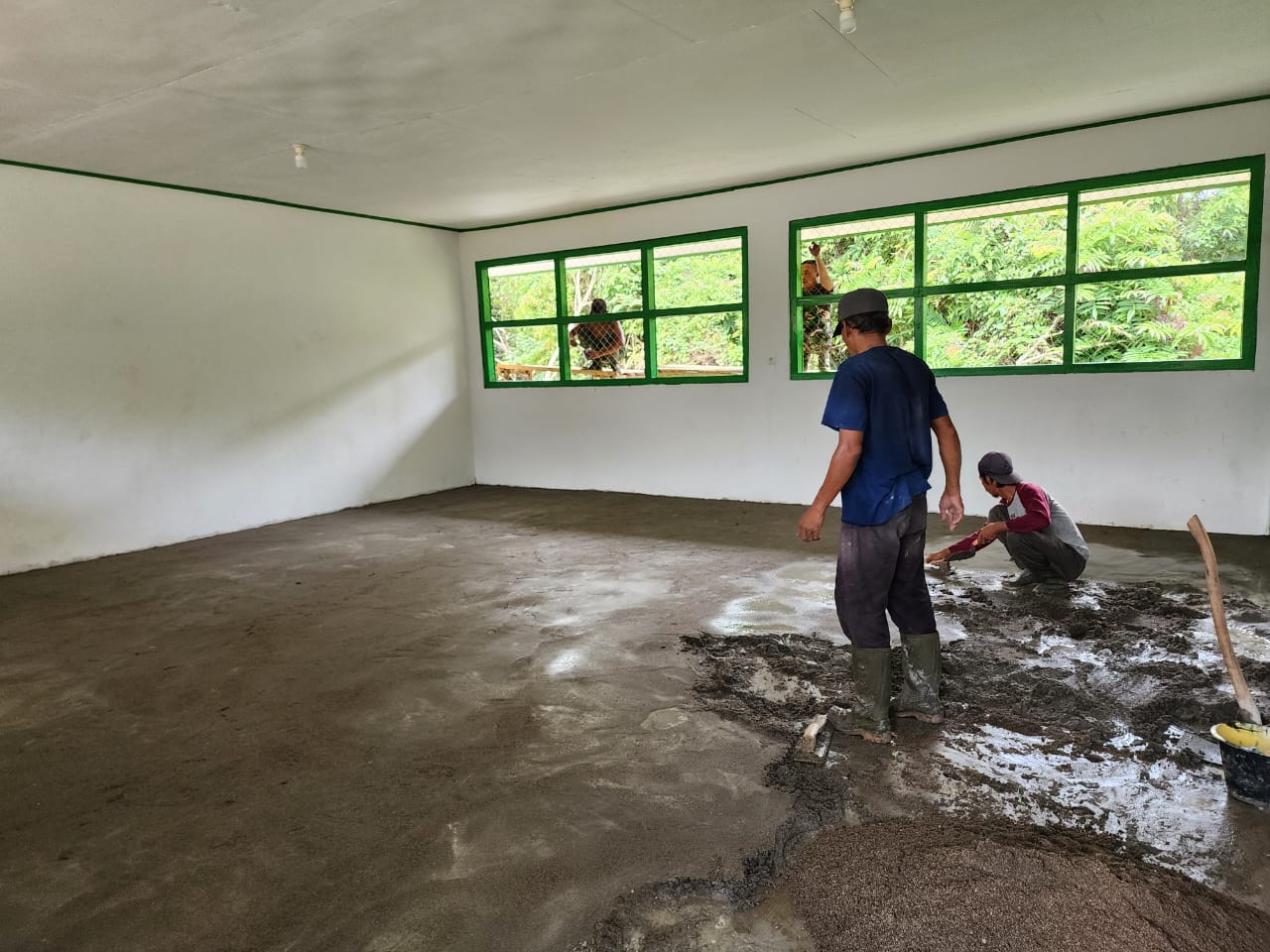 Pengerjaan plester lantai ini merupakan bagian dari program rehab madrasah yang bertujuan menciptakan lingkungan belajar yang lebih nyaman dan layak bagi siswa serta guru. Dengan penuh semangat gotong royong, Satgas TMMD bersama warga bahu-membahu menyelesaikan tahap akhir pengerjaan lantai agar lebih rapi dan kokoh.