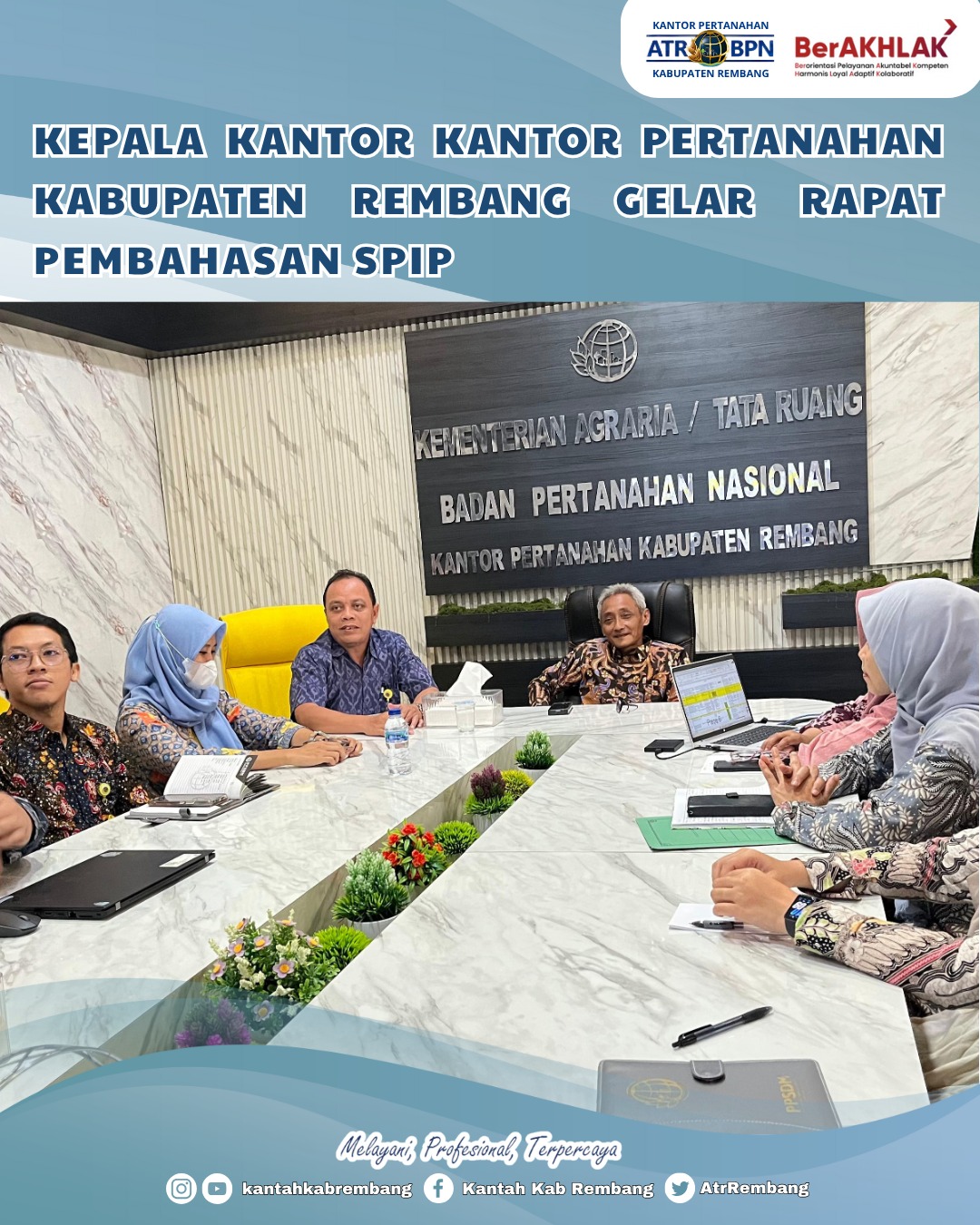 Melalui rapat ini, diharapkan penerapan SPIP di Kantor Pertanahan Kabupaten Rembang semakin optimal, selaras dengan arahan Badan Pertanahan Nasional, dan mampu meningkatkan kualitas layanan kepada masyarakat.