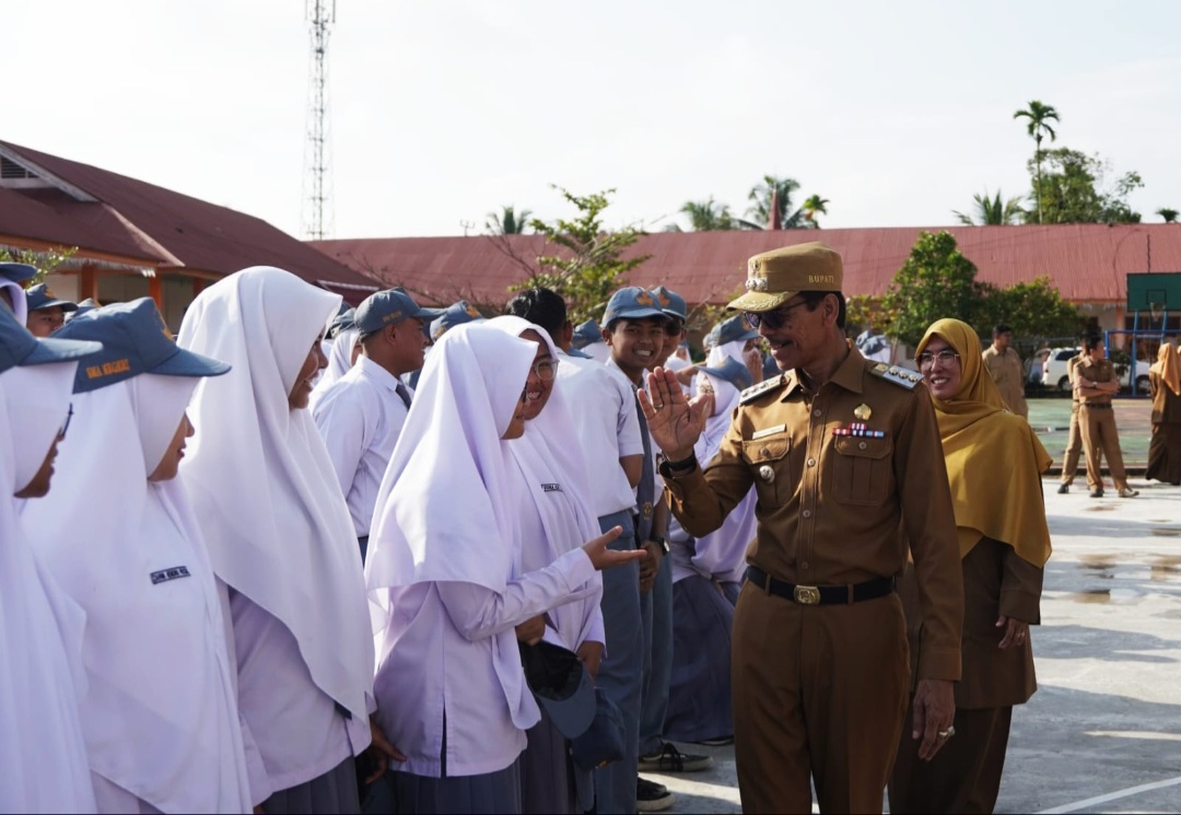 Kami berpesan kepada para pelajar untuk belajar dan menuntut ilmu dengan sungguh-sungguh, jangan sia-sia kan perjuangan orang tua, hormati guru dan jadilah orang yang menguasai ilmu pengetahuan, ujar Bupati.