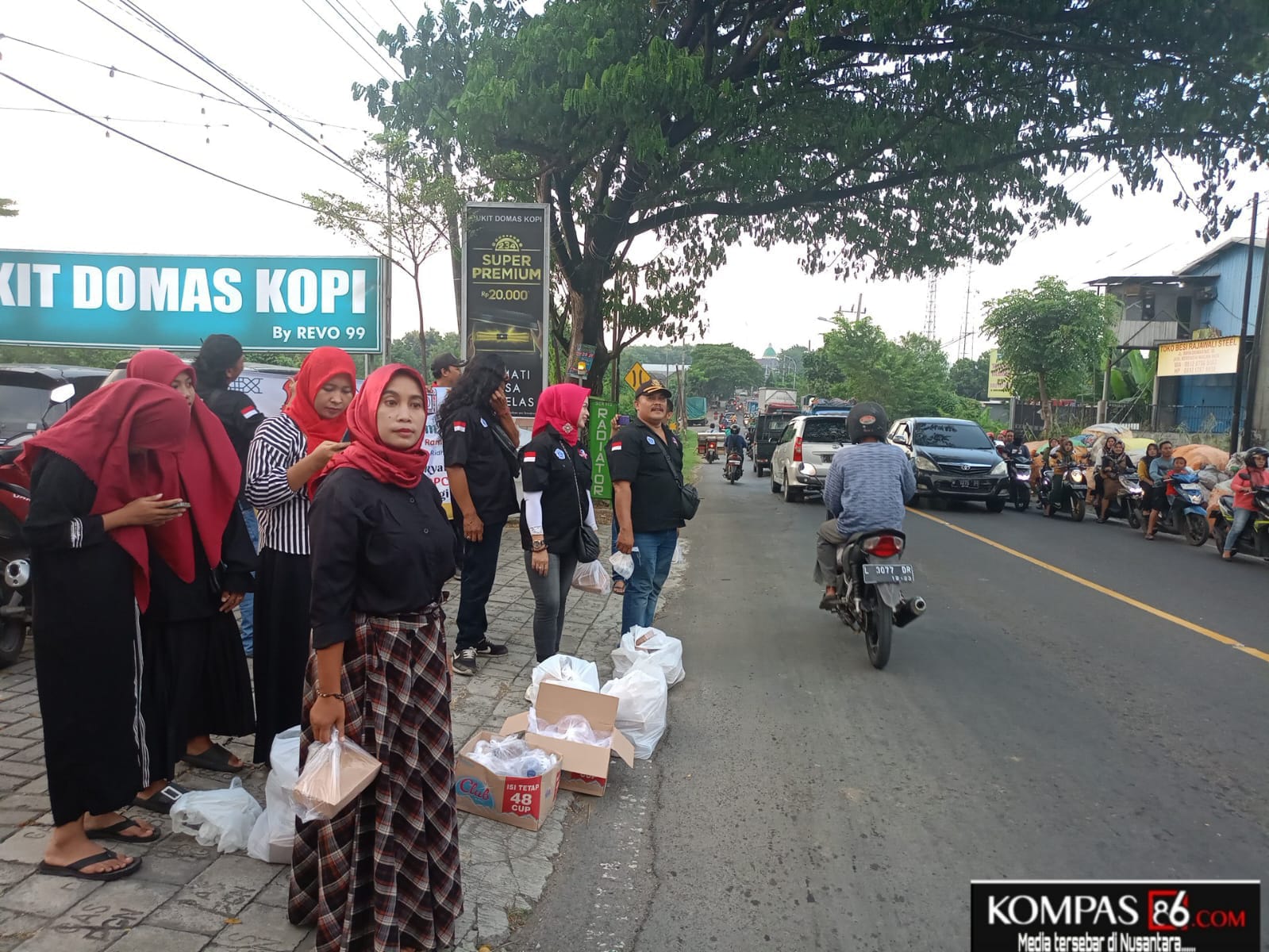 Anggota DPC Korak Gresik yang bertugas membagikan tampak begitu gembira melihat sambutan penguna jalan yang menerima takjil gratis.