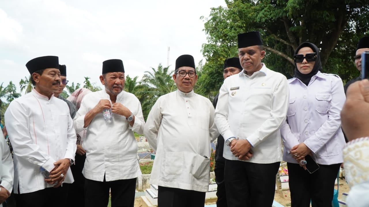 Pj. Bupati Langkat H.M. Faisal Hasrimy, AP., M.AP bersama PB MABMI berziarah ke makam Sultan Langkat dan Leluhur MABMI dalam rangka Milad MABMI ke 53 bertempat di Masjid Azizi Tanjung Pura dan Pemakaman Umum Gebang, Kamis (11/07/2024).