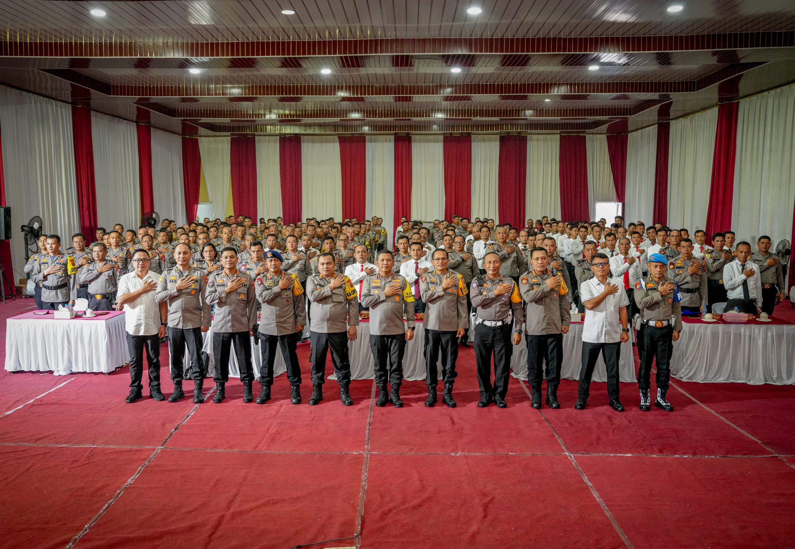 Kapolda Sumut, Irjen Pol Agung Setya Imam Effendi, memberikan arahan serta motivasi kepada seluruh personel Polres Langkat dalam kunjungan kerjanya, Senin (27/5).