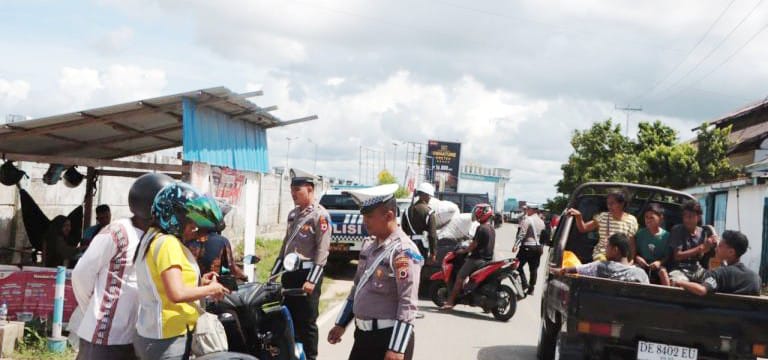 Pada pelaksanaan tugas Operasi tersebut, tampak para Petugas gabungan Satuan Tugas (Satgas) Operasi Keselamatan Salawaku 2025 memberhentikan kendaraan untuk dilakukan pemeriksaan terhadap pengendara, terkait surat maupun kelengkapan kendaraan.