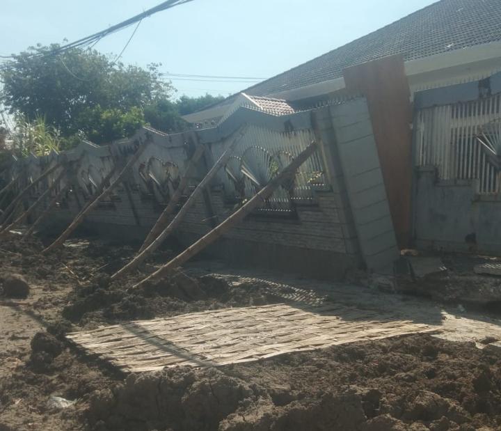 “Robohnya pager rumah ini karena penggalian tanah memakai alat berat guna bangun saluran air ini,” ujar wanita paruh baya yang mengaku bernama Ratna selaku Asisten rumah tangga yang tinggal di rumah Jl Kartini