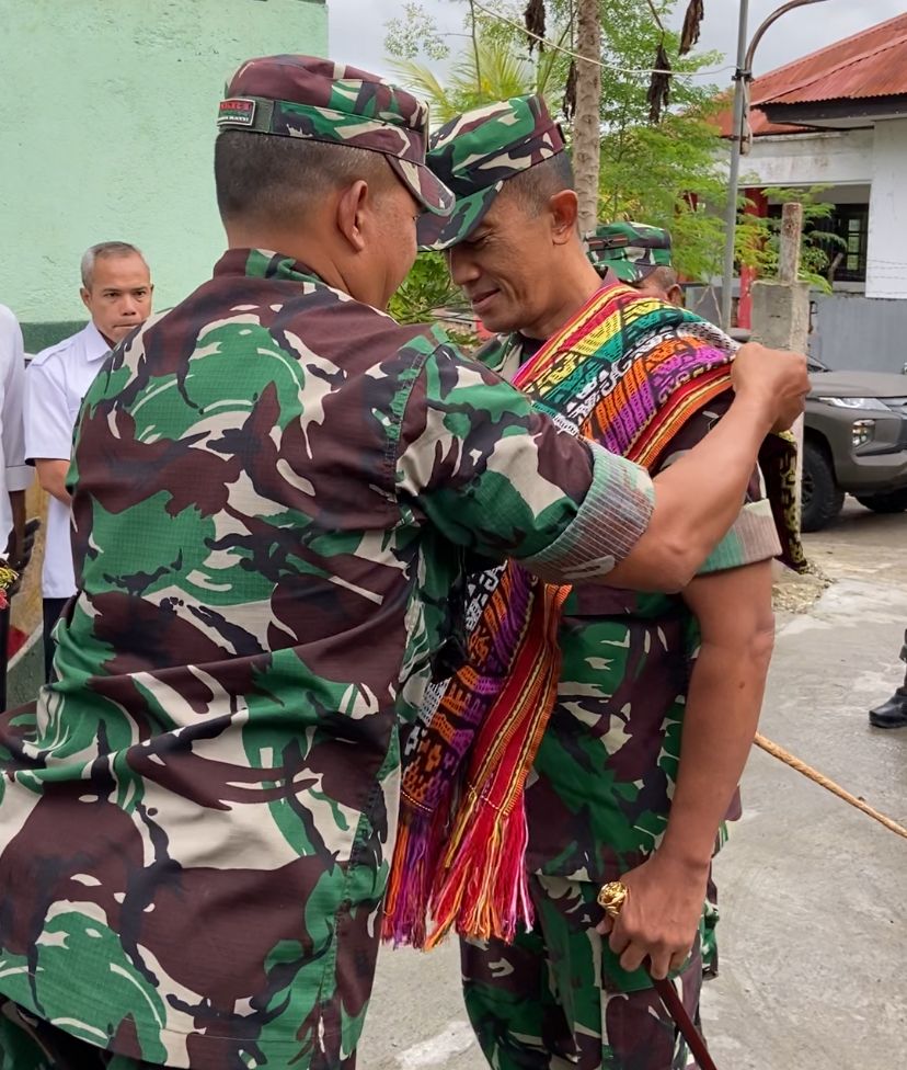 Pukul 10.22 Wita Rombongan Pangdam IX Udayana tiba di Koramil 1621- 02 Amanuban Tengah dan disambut oleh Dandim 1621/TTS dan Danramil secara adat natoni ( adat Timor ) dan pengalungan selimut.