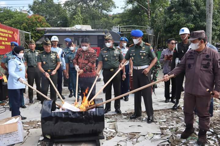 Pangdam Tanjungpura Bersama Orjen TNI Musnahkan Barang Bukti Sabu 21,028 Kg di Otmil II-06 Pontianak