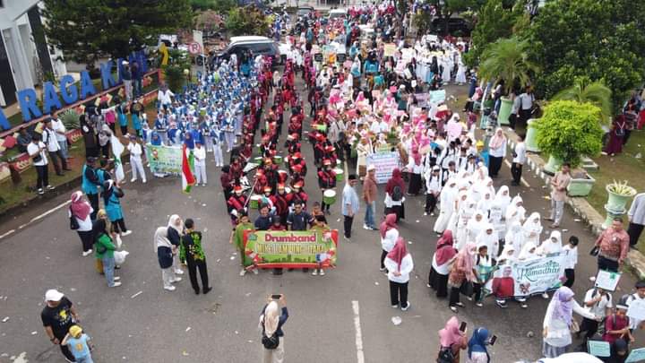 Lampung utara,Kompas86.Com Ribuan Peserta Didik dari Jenjang Pendidikan Anak Usia Dini (PAUD) hingga ke tingkat Sekolah Menengah Atas(SMA) sederajat mengikuti Pawai Songsong Ramadhan yang diselenggarakan Kelompok Kerja Kepala Raudhatul Athfal(K3RA) bekerjasama dengan Pemerintah Kabupaten(Pemkab) Lampung Utara(Lampura).