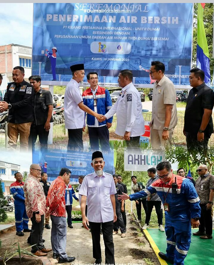 DUMAI( RIAU)KOMPAS86.Com- Perusahaan Daerah Air Minum (PDAM) Tirta Dumai Bersemai secara resmi memasok kebutuhan air bersih PT. Kilang Pertamina Internasional – Unit II Dumai. Pengaliran ini secara seremonial dilaksanakan di Pos Pengamanan Komplek Perumahan PT. KPI – RU II Dumai di Jalan MH Thamrin, Kamis (16/1/2025).