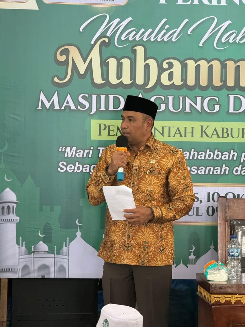 PJ Bupati Aceh Timur Amrullah M. Ridha, dalam sambutanya mengajak jamaah melalui momentum maulid akbar itu untuk meneladani akhlak Rasulullah sebagai pedoman hidup di dunia.