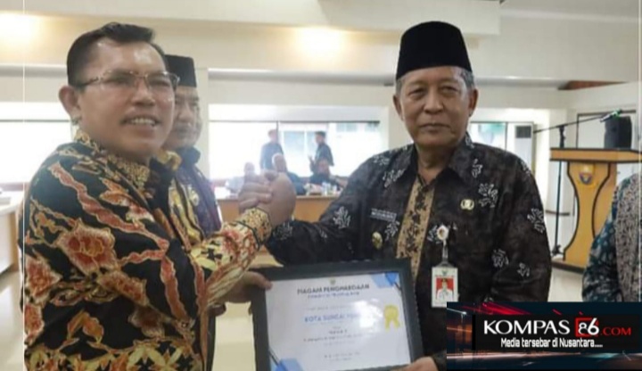 Penghargaan itu diserahkan langsung Wakil Gubernur Jambi, Abdullah Sani kepada Walikota Sungai Penuh Ahmadi Zubir diruang Aula Kantor Bappeda Provinsi Jambi.