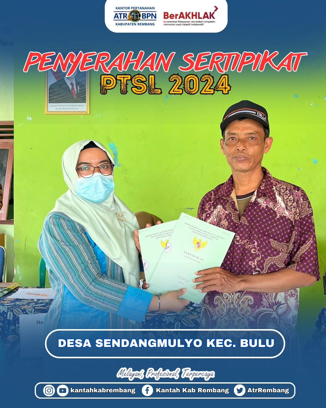 Penyerahan Sertipikat PTSL TA 2024 Desa Sendangmulyo Kecamatan Bulu Kabupaten Rembang