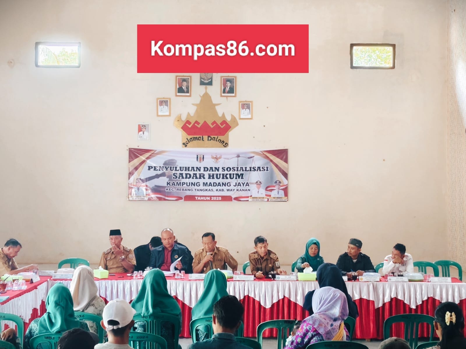 Pemerintah Kampung Madang Jaya, Kecamatan Rebang Tangkas, Kabupaten Way Kanan, menggelar kegiatan Penyuluhan dan Sosialisasi Sadar Hukum sebagai upaya meningkatkan pemahaman masyarakat terhadap pentingnya taat hukum dalam kehidupan bermasyarakat.