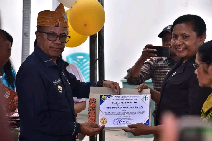 Suasana peresmian gedung Unit Pelaksana Teknis (UPT) Puskesmas Prototype Oinlasi oleh Bupati Timor Tengah Selatan, Egusem Pieter Tahun, ST.,MM, menjadi sorotan pada Kamis (25/01/2024). Acara tersebut juga menjadi momen penting untuk penyerahan penghargaan kepada Puskesmas yang mencapai target imunitas dasar lengkap, sertifikat akreditasi Puskesmas, dan penghargaan bagi desa dengan pelayanan kesehatan terbaik.