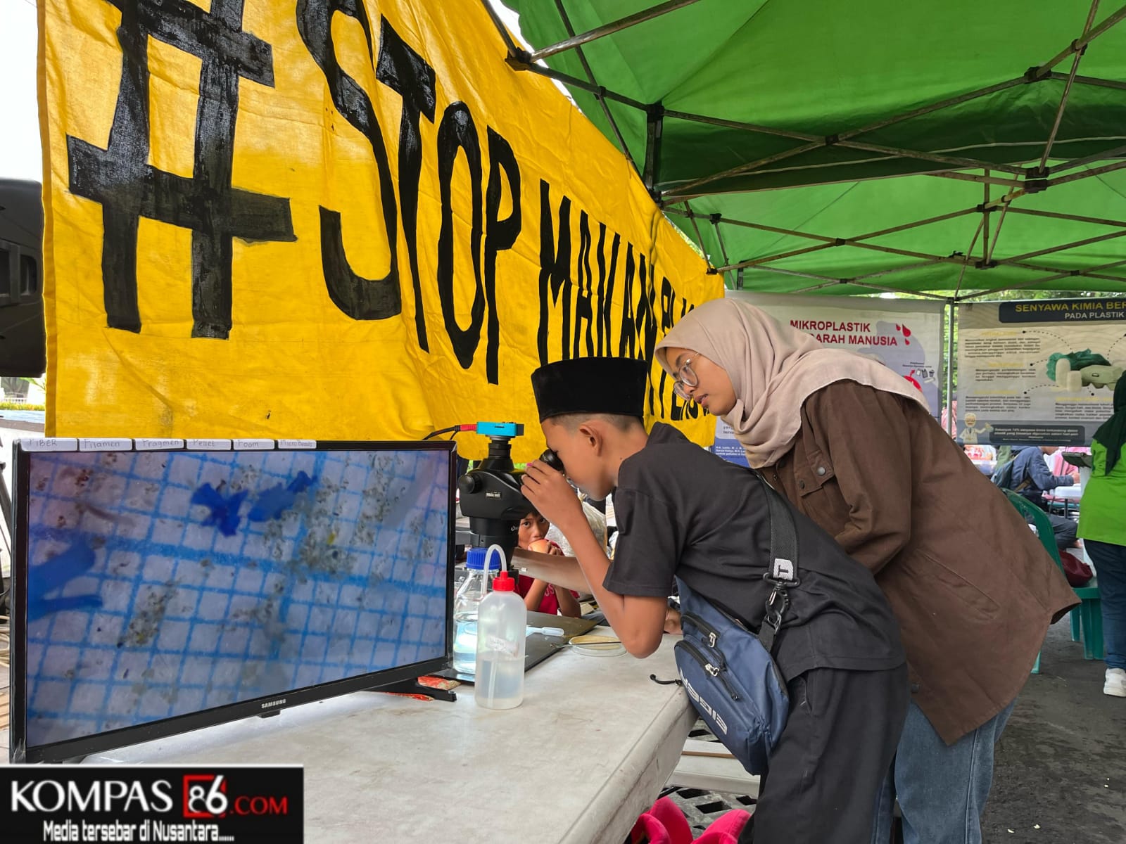 Pada Car Free Day hari ini tanpa ada yang unik, seperti edukasi science polusi Mikroplastik dengan Mikroskop, kostum karakter Yuyu besar dan grebek kantong plastik.