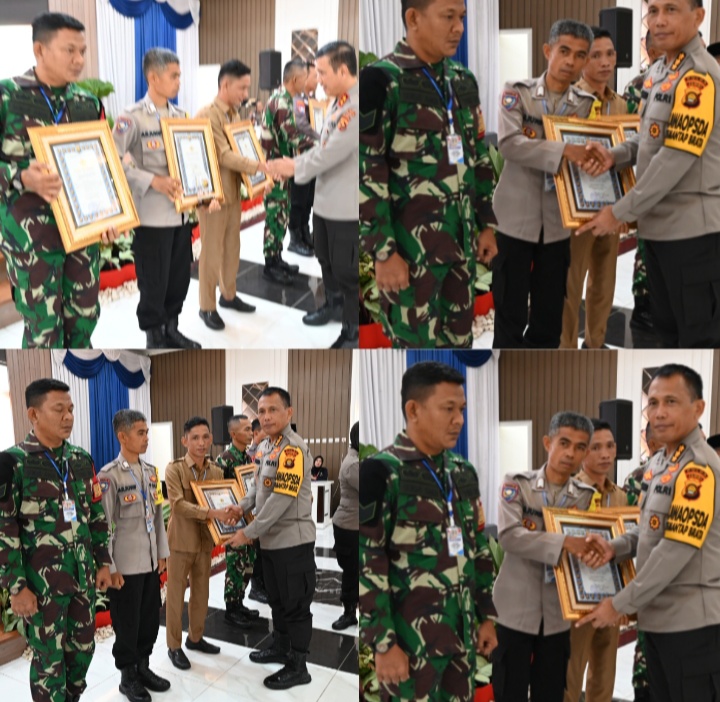 kapolda jambi.DRS .RUDI HARTONO. berharap kepada babinsa dan babinkamtikmas yang merahih juwara hendak.nya kelian bersatu padu dalam membagi imformasi dalam kecamatan dan di desa masing masing .selahin kegiatan ini di sertai dalam rangka penyerahan piagam di turutsertai kegiyatan HUT Bhayangkara ke 78 polda jambi di aula polda jambi pungkasnya