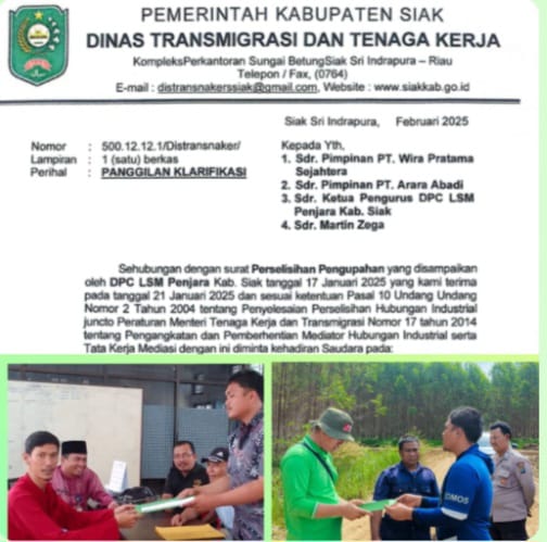 Jajaran Dpc Lsm Penjara Siak yang telah menerima kuasa untuk menyelesaikan permasalahan perselisihan pengupahan Martin dkk. Sudah berkoordinasi dengan menyampaikan surat klarifikasi kepada pihak Direktur WPS, Pimpinan Rara Abadi melalui Humas Binson Sinaga dan Disnaker Siak dan telah ada upaya pertemuan dan panggilan resmi dari Disnaker Siak namun belum ada titik terang.