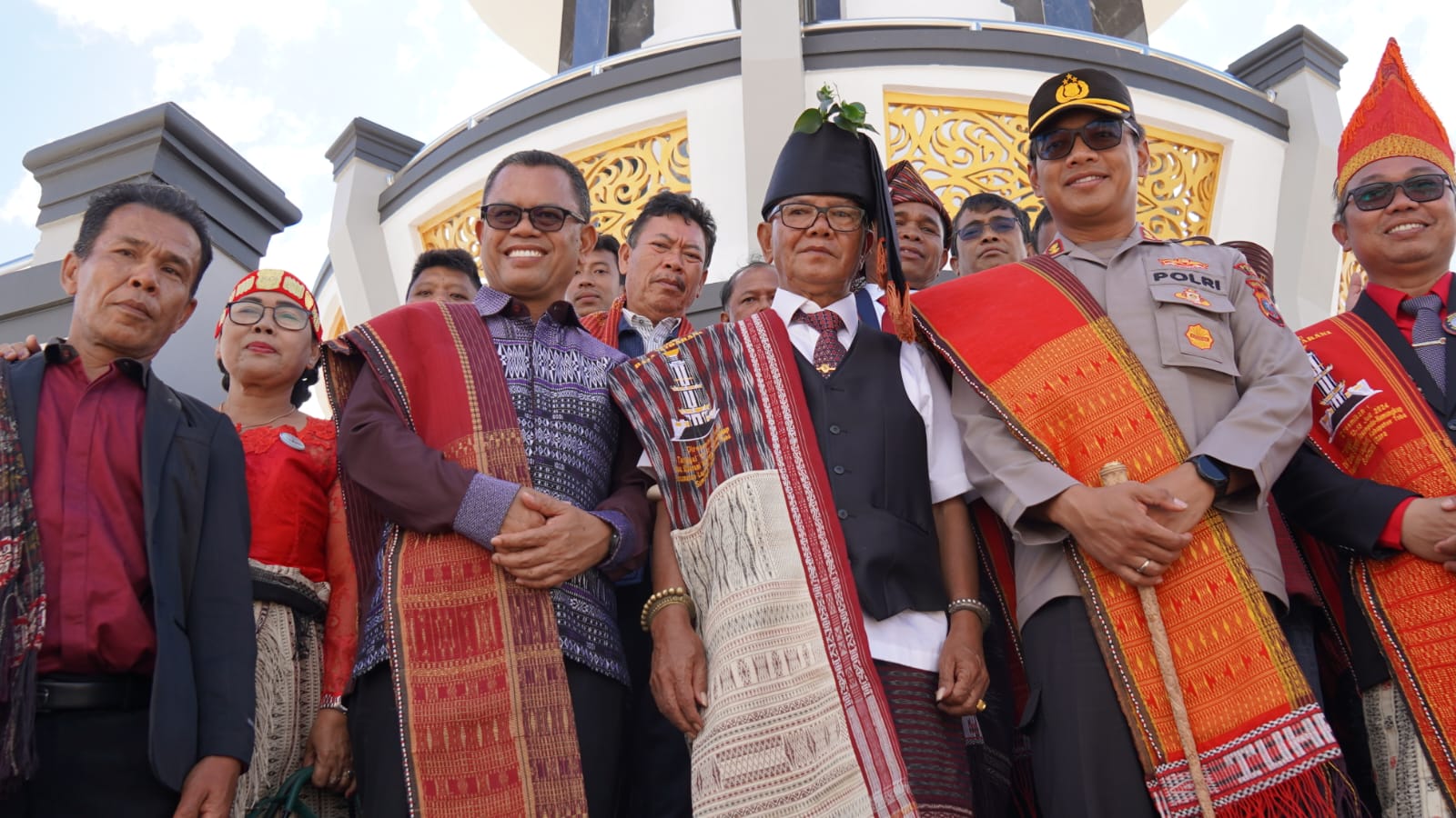Bupati Toba, Ir.Poltak Sitorus didampingi Sekretaris Daerah Augus Sitorus dan sejumlah pimpinan perangkat daerah menghadiri pesta Tugu Raja Sibarani di Landbow, Desa Sibarani Nasampulu, Kecamatan Laguboti, Kabupaten Toba pada Sabtu (13/07/2024). Pesta ini digelar selama dua hari, Jumat-Sabtu (12-13/07/2024)