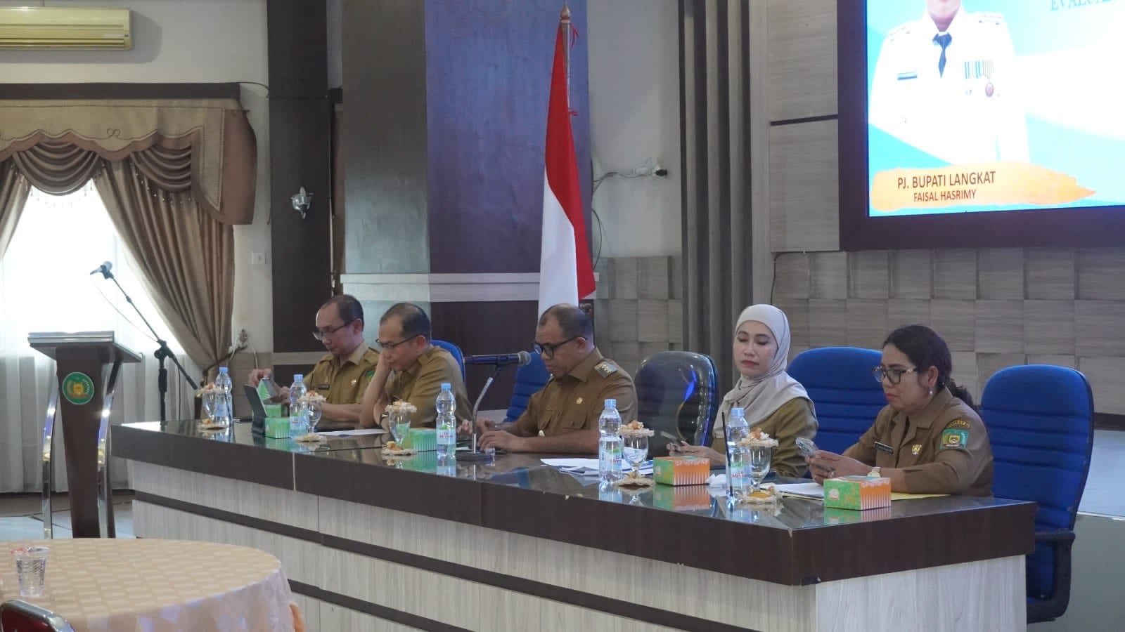 Pj. Bupati Langkat, Muhammad Faisal Hasrimy, AP, M.AP, memimpin Rapat Evaluasi Intervensi Serentak Percepatan Penurunan Stunting Kabupaten Langkat Tahun 2024, yang diadakan di Ruang Pola Kantor Bupati Langkat pada Senin, (15/07/2024).
