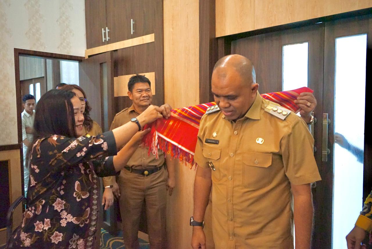 Pj. Bupati Langkat H.M.Faisal Hasrimy, menerima Audensi Majelis GBKP Klasis Kecamatan Kuala Langkat Tahun 2024 dan Pengurus Permata Klasis Kuala Langkat di Kantor Bupati Langkat, Senin (27/5/2024).