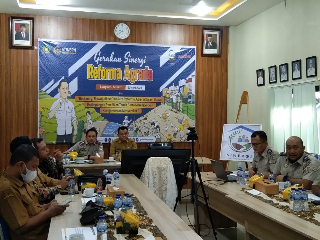 Pj. Bupati Langkat H.M.Faisal Hasrimy AP,M.AP yang di wakilkan oleh Asisten Pemerintahan dan Kesejahteraan Rakyat Drs H.Mulyono,M.Si Menghadiri Gerakan Sinergi Reporma Agraria bersama Dirjen Penataan Agraria Kementrian ATR/BPN RI secara Zoom Metting bertempat di Aula Kantor Pertanahan Kabupaten Langkat Jl.T.Imam Bonjol no 2 Stabat, Senin (22/4/2024).