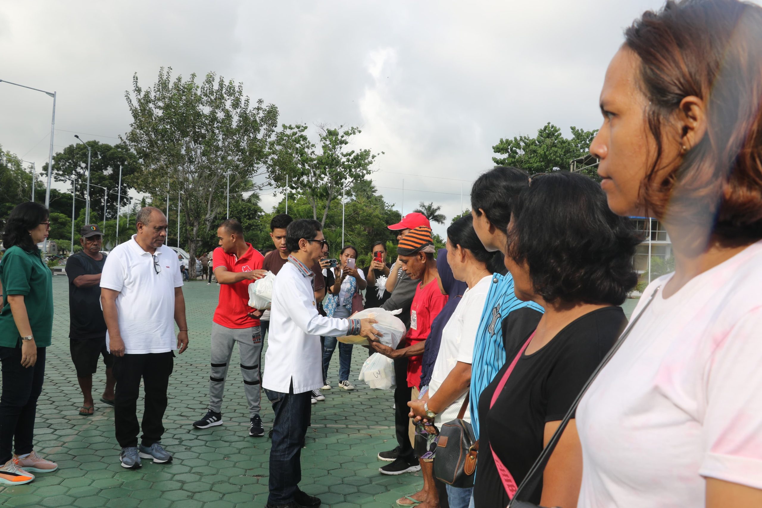 Acara kemudian dilanjutkan dengan penyerahan bantuan sembako secara simbolis bagi perwakilan masing-masing masyarakat dari sepuluh Kelurahan di Kota Kupang.